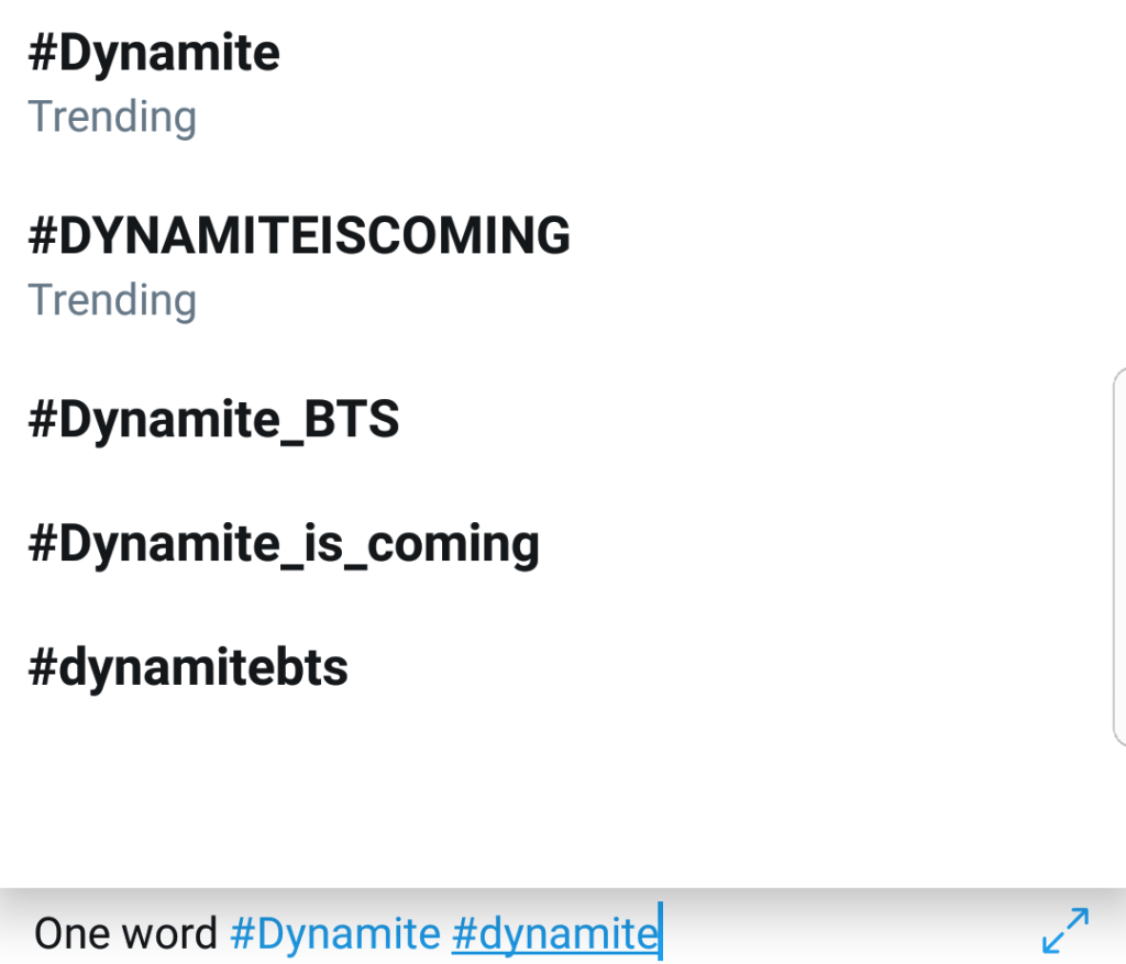 The hash tags #Dynamite #BTS_Dynamite are already trending on twitter after only a few minutes of the announcement! 1.4 Million Tweets, and counting every minute!