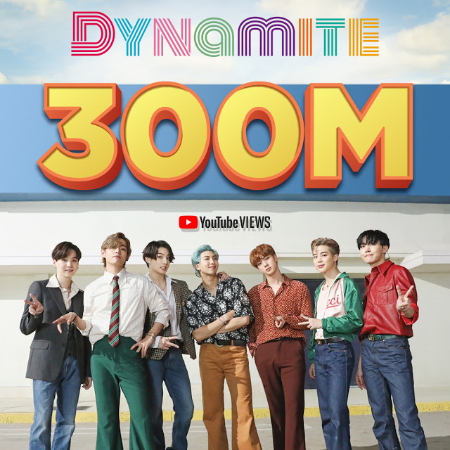 “15 days later after its release, Dynamite MV has hit 300 millions views on YouTube. It is now the fastest music video by a group to do so on YouTube history and the 2nd worldwide after Taylor Swift – ‘Look What You Made Me Do’ which took 13.3 days. Dynamite had 33.9 million streams in the US and 300,000 sales in its first week. According to K-Charts & Translations, Dynamite now has 21 music show wins in 2020, the most for any artist this year. Other BTS videos to reach 300 million views were Boy With Luv 35 days, Fake Love 106 days, IDOL 114 days, and DNA 168 days.