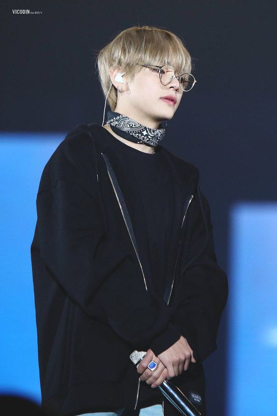 For a more edgy and rebellious vibe, V has been seen wearing bandanas as scarves, tied casually around his neck. This look complements his on-stage persona, giving him a rockstar-like aura while performing. Paired with leather jackets, ripped jeans, and boots, this style makes him look effortlessly cool.