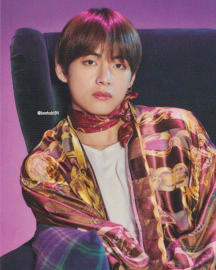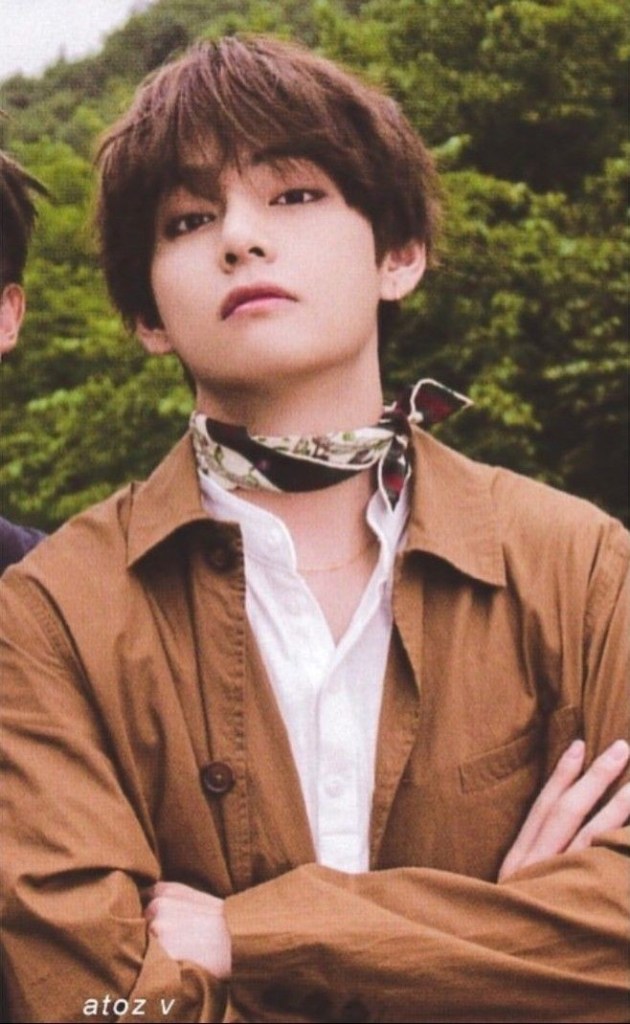 V understands how different fabrics and patterns can enhance an outfit. From silk to wool, floral to paisley, minimalist to extravagant designs, he picks scarves that add depth and contrast to his look.