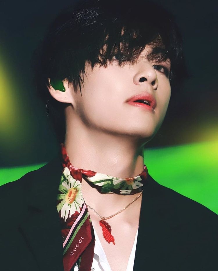 V has incorporated scarves into his outfits in various ways, showcasing his versatility and deep understanding of fashion aesthetics. Let’s break down some of his most memorable scarf looks: