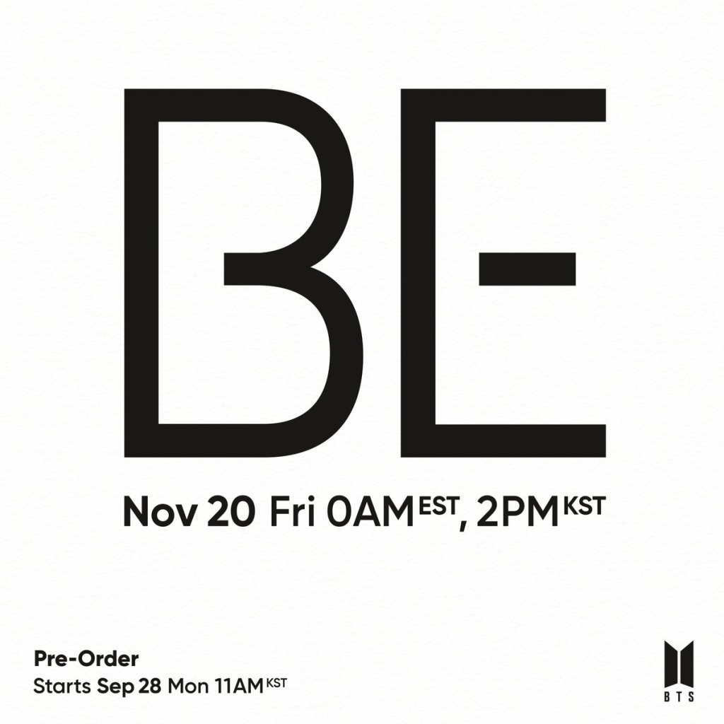 “BTS new Album “BE (Deluxe Edition)” will be released on Friday November 20th. Pre orders will begin Monday September 28th.”