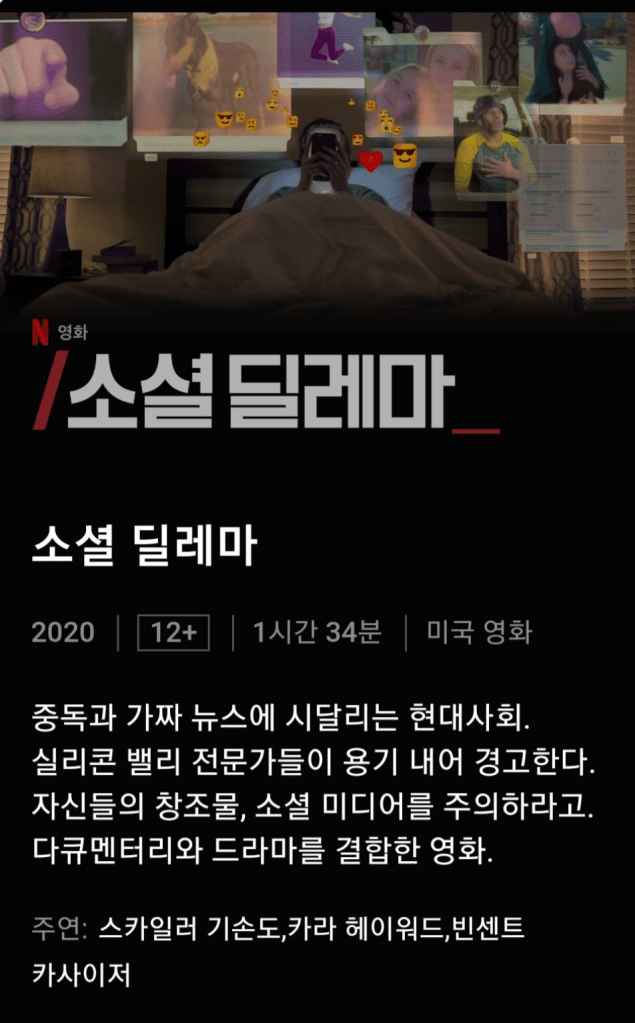This documentary-drama hybrid explores the dangerous human impact of social networking, with tech experts sounding the alarm on their own creations. The film explores the rise of social media and the damage it has caused to society, focusing on its exploitation of its users for financial gain through surveillance capitalism and data mining, how its design is meant to nurture an addiction, its use in politics, its effect on mental health (including the mental health of adolescents and rising teen suicide rates), and its role in spreading conspiracy theories such as Pizzagate and aiding groups such as flat-earthers. The Social Dilemma premiered at the 2020 Sundance Film Festival and was released on Netflix on September 9, 2020.