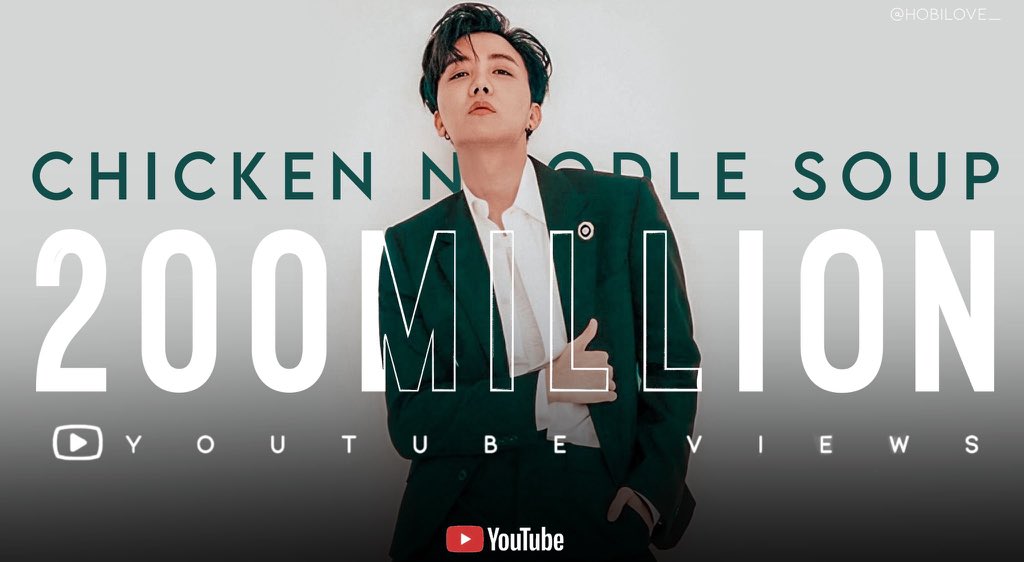 The ‘Chicken Noodle Soup ft. Becky G’ Music Video just surpassed 200M views on YouTube after a year. J-Hope now becomes the 1st BTS member, 3rd Korean Male Solo Artist and 5th Korean Solo Act to achieve this milestone with a Music Video.