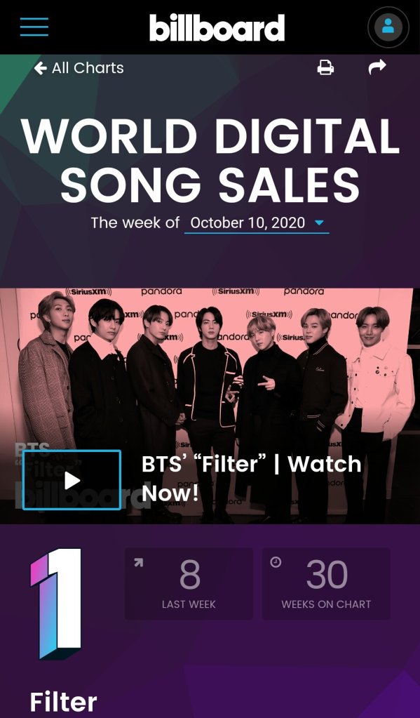 “Filter” is a fan-favorite track from BTS’s fourth studio album, “Map of the Soul: 7.” Prior to reaching the top spot, it had been charting on the World Digital Song Sales chart for 30 weeks, highlighting its enduring popularity. Notably, it is the highest-charting solo song from the album, being the first to hit number one.