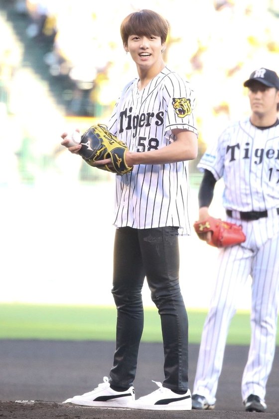On June 2nd 2017, BTS was came to be special guests at the professional baseball game between the Hanshin Tigers and the Hokkaido Nippon-Ham Fighters at the Hanshin Koshien Stadium. Jungkook even threw the first pitch