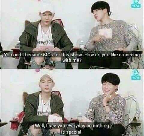 Suga: Well, I see you everyday so nothing is special.
