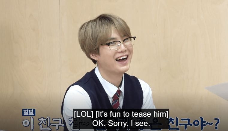 Jimin pouting said yes he believed his Hyung, and then there’s Suga with that cheeky laugh
