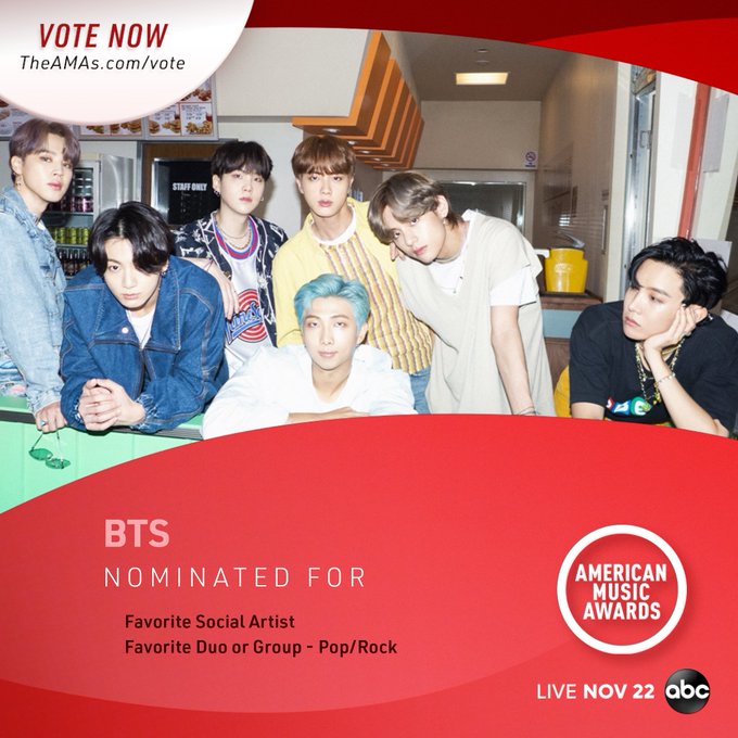 BTS have been nominated in 2 categories at the AMAs, Favorite Social Artist and Favorite Duo/Group – Pop/Rock. BTS have won the award in 2018 and 2018, in 2017, they performed their hit song “DNA” at the American Music Awards for the first time in 2017. You can go here to vote. The American Music Awards of 2020 will be on Monday, 22nd November.