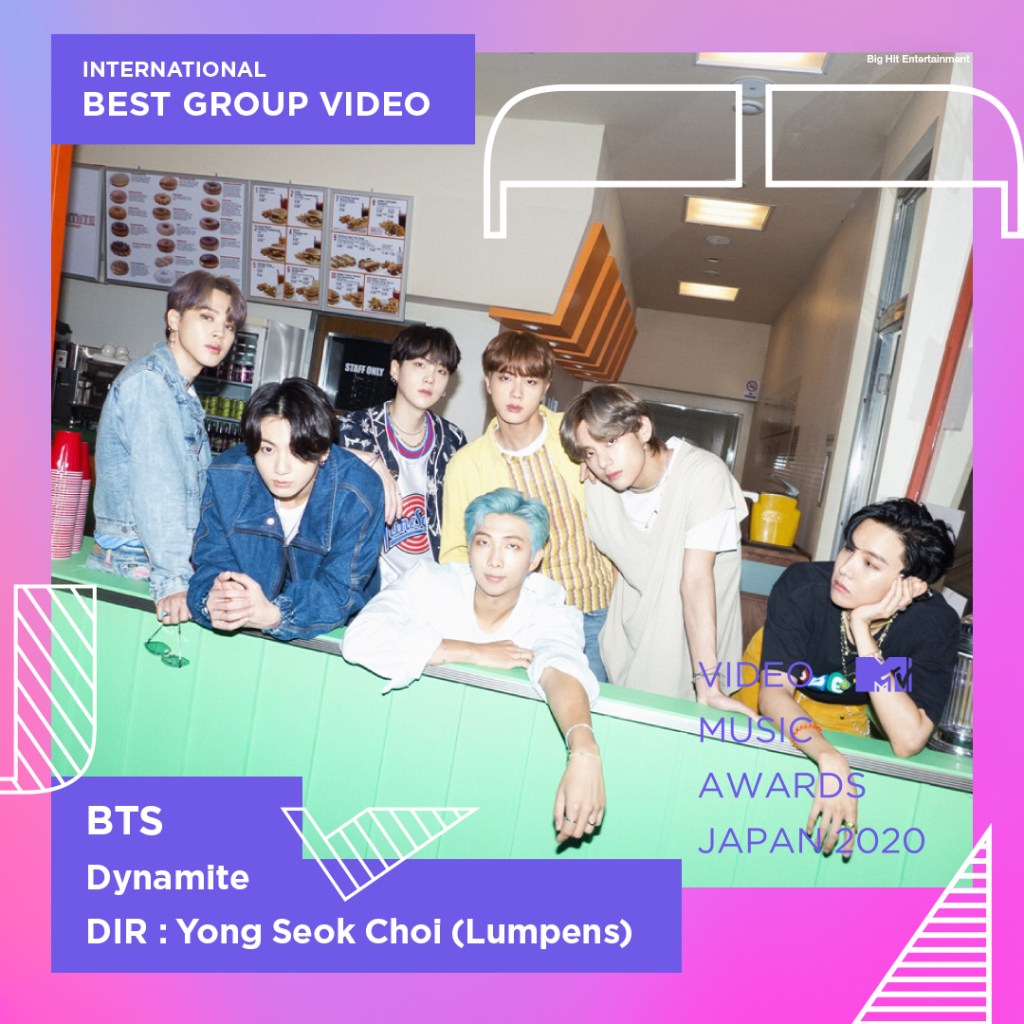 “Dynamite” continues to rule awards as much as it is ruling the charts. This year the song has been nominated in many awards, won several awards and now has added another award. The 2020 MTV Video Music Awards Japan announced its winners on October 30. “Dynamite” took home Best Group Video title among international MVs. BTS have won the award before with their song “Fake Love” back in 2018. Online voting is still ongoing and “Dynamite” is still in the running for the overall Best Video of the Year Award. There will be a live broadcast of the 2020 MTV Video Music Awards Japan on 29th November.