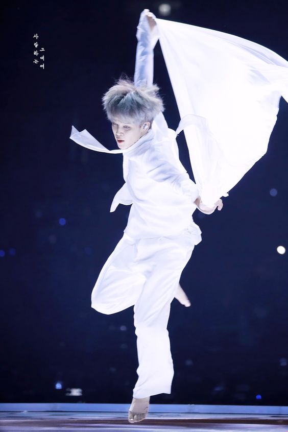 Contemporary dance emphasizes the use of gravity, control, and release of movement, allowing dancers to explore the full range of motion. Jimin’s movements are often fluid and soft, but he can shift to sharp and forceful movements with ease. His body seems to flow naturally with the music, making his performances appear effortless, although they require immense skill. The balance between tension and release, a hallmark of contemporary dance, is something Jimin executes flawlessly. In solo stages like Serendipity, Jimin combines soft, tender movements with complex floor work, effortlessly moving between standing, kneeling, and lying positions. His ability to merge these elements makes his dance style both powerful and graceful, evoking deep emotion from the audience. Jimin is a master of this, often hitting every beat with precision while still allowing room for expressiveness and interpretation.