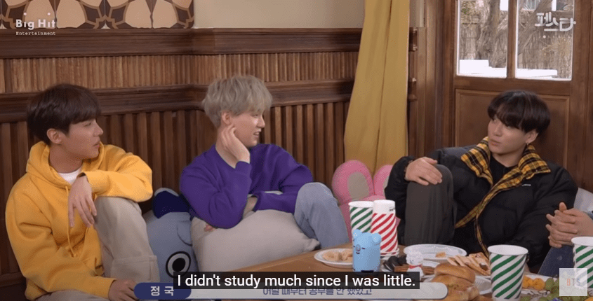 Jungkook said that he didn’t study much when he was little.. to that Suga said…