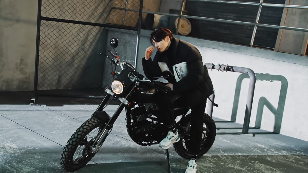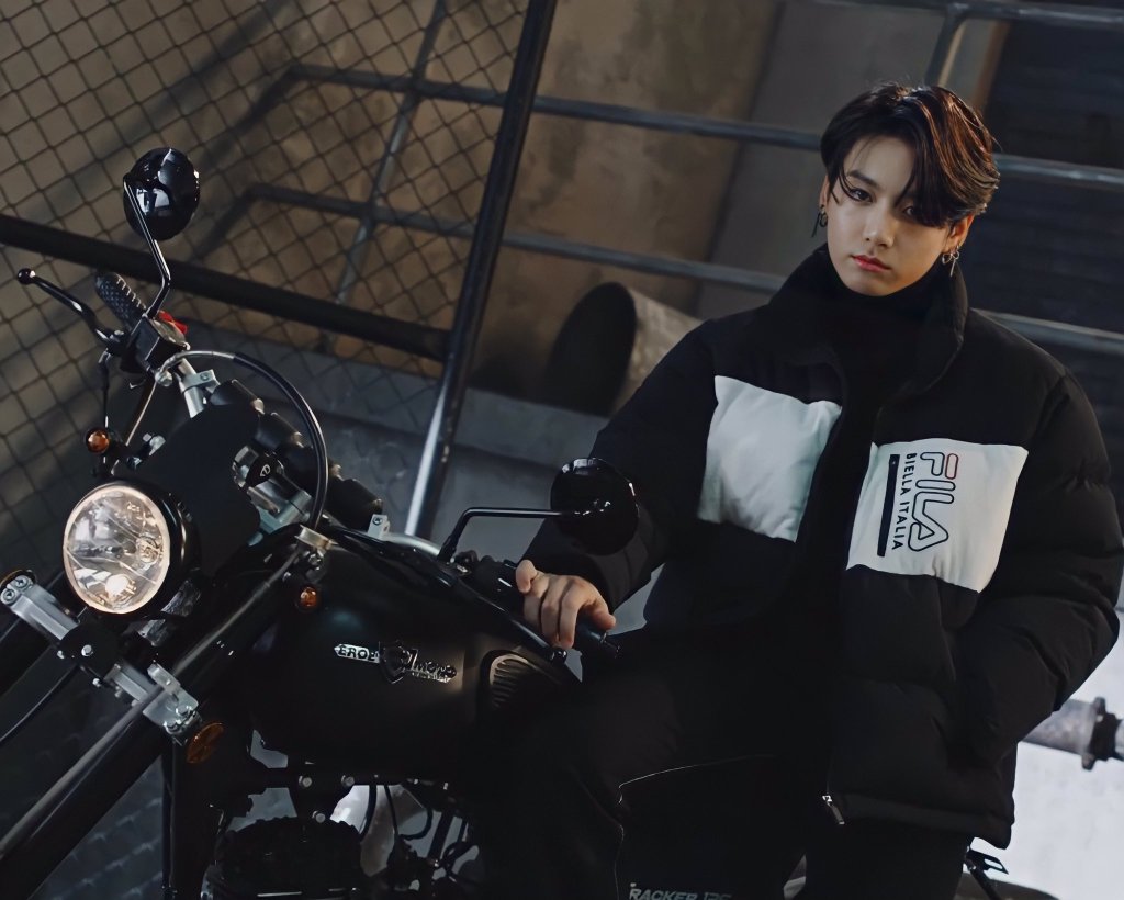 BTS Jungkook is out here finishing all the air that ARMY is breathing with his breath taking visuals! The latest “Fila On The Street” Fila Ad campaign featuring BTS, Jungkook has got fans off their rockers. The ad is fulfilling every fantasy that fans have ever imagined Jungkook portraying. There have been fan edits of Jungkook with a motor bike for so long that fans could not believe that those edits were brought to life.
