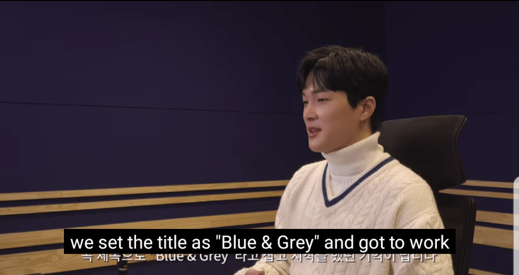 Writting “Blue & Grey” was a fun process as they both contributed on the ideas of what the song should be. V had suggested a song with a ‘gloominess’ feel, but rather than the song being gloomy or depressed, it should beabout finding comfort and hope through the storm. Which the song fully represents.
