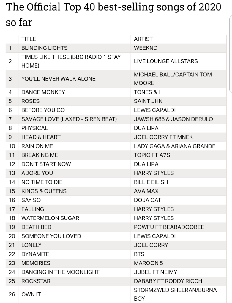 BTS “Dynamite” is still maintaining its presence on world charts with the most recent being on UK’s top 40 Charts. “Dynamite” took position 22 in the Official Top 40 best-selling songs of 2020 so far. The song with a catchy beat and retro sound is still being shown love by ARMYs who are still dancing to its rythm. The all English BTS song is also included in their new Album “BE” that was released on 20th November 2020.