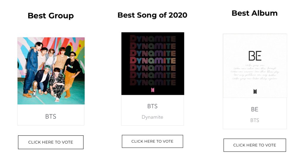 To Vote for BEST GROUP: click http://bit.ly/36Stw4h, BEST SONG: click https://bit.ly/37NtxWw and BEST ALBUM: click https://bit.ly/3lWkE1Q