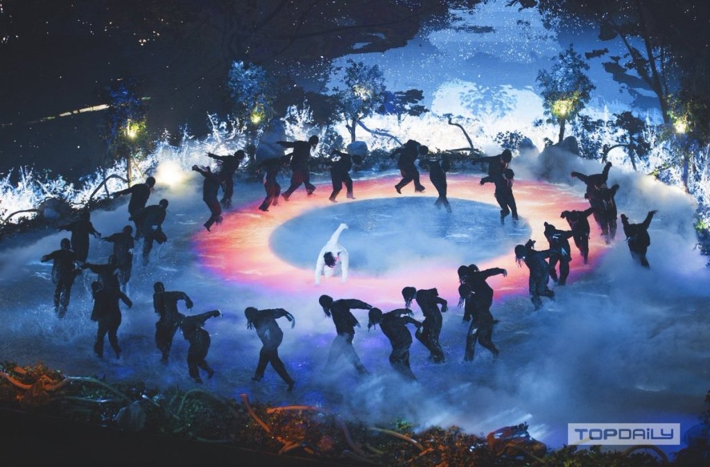 The performance was rich in symbolism. The use of shadows and light represented the duality of fame and the fear of losing one’s passion. The dancers’ movements depicted the transformation from struggle to acceptance, aligning with the song’s message about confronting one’s inner fears.