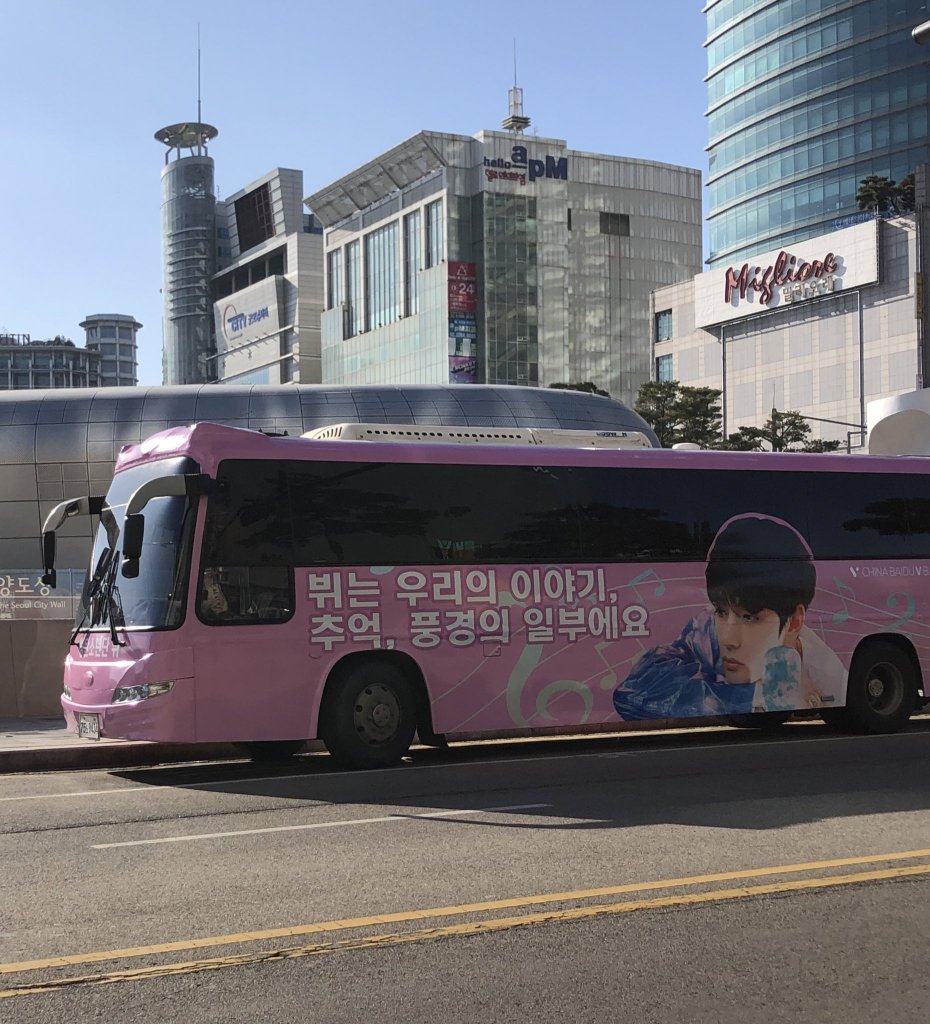 According to the fanbase, they have prepared QR CODE in advance on the body of the buses that would show them fancam videos of Taehyung once scanned. The different designs of the buses are the moving exhibitions themselves as the designs record shared are memories between Taehyung and fans during the 7 years since he has first debuted.