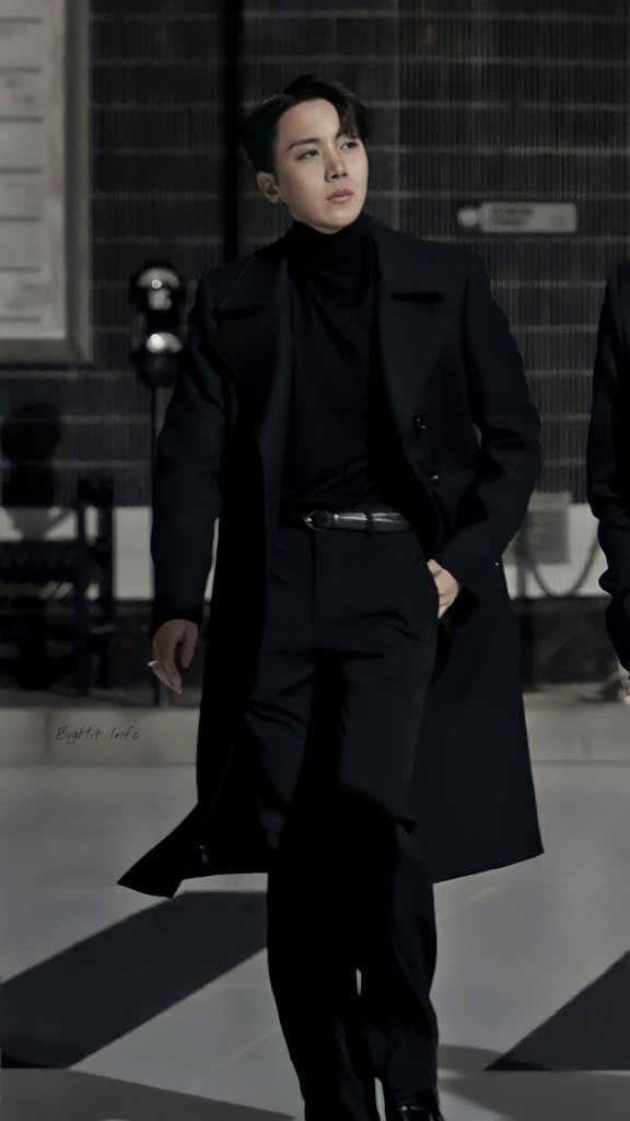 His good looks? Undeniable. Sculpted, symmetrical, striking. But it’s not just about aesthetics. There’s a fire in his expression, a spark in his features that elevates every campaign he touches. J-Hope doesn’t simply wear a look; he owns it. In this ad, he’s dressed in sleek, all-black styling that further amplifies his commanding aura. The all-black ensemble wraps around him like a second skin, blending elegance with edge. It’s fashion, yes, but with him in it, it’s a force of nature.
