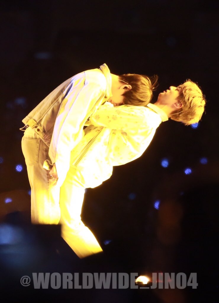 In one of the concerts, V decided that his Hyung’s chest was the best place to do some thinking, so he leaned into his chest and Jin bent over so low, you’d be afraid that he would fall back, but after a few seconds he stood back up like nothing happened. How does he do that? We need proof with receipts that Jin has extra bones!