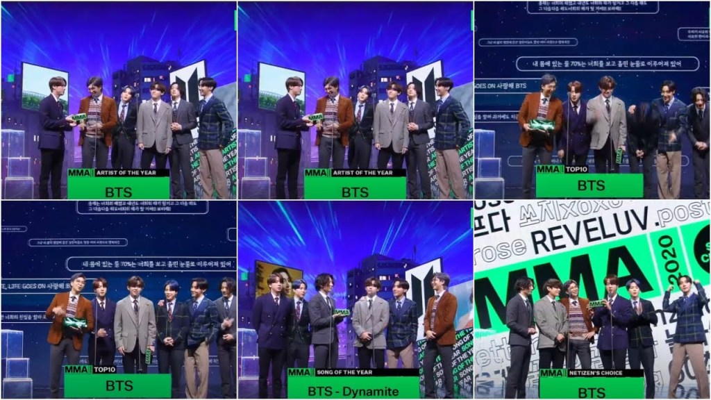 On November 30, 2020, their single “Life Goes On” debuted at number one on the Billboard Hot 100 chart. With this, the band recorded a number of notable achievements: their third consecutive number one in just three months (achieving it even faster than any band since The Beatles in 1964), the first song performed primarily in Korean to debut in the top spot, seven songs appearing simultaneously on the Hot 100 chart, and the first group in chart history with two number one Hot 100 debuts.