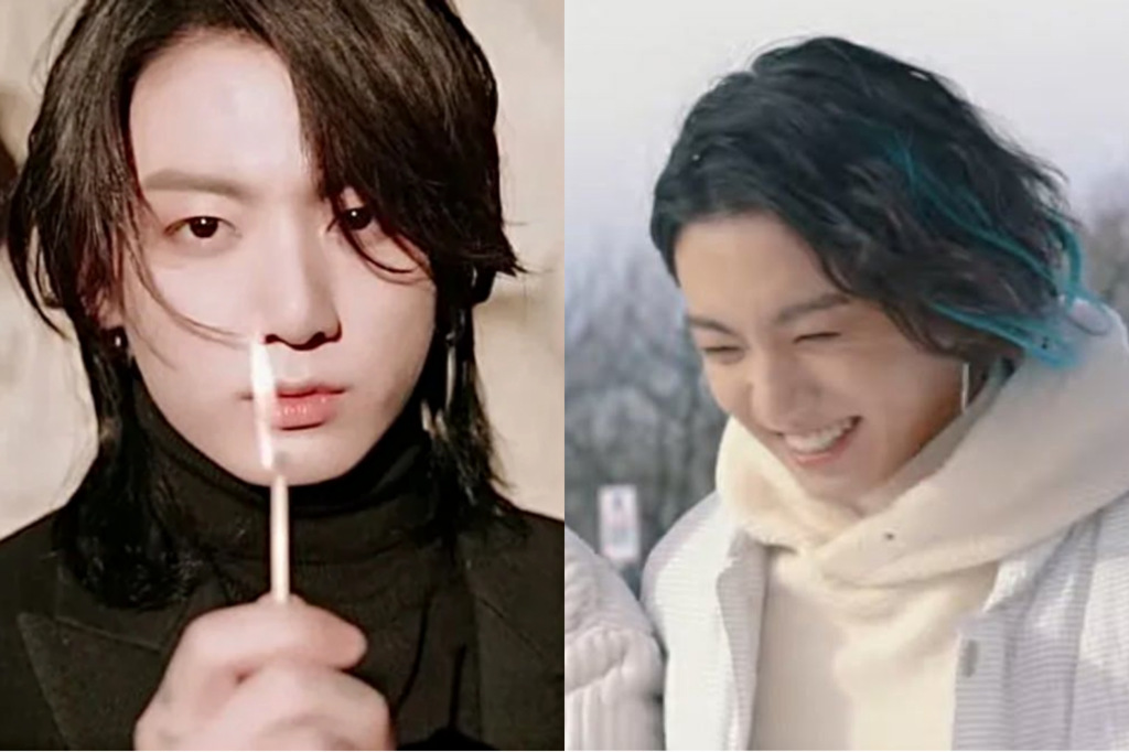 In another one of their shots, Jungkook appeared with blue highlights on his long curly hair. And fans even loves it more. This reminded fans of when Jungkook had gold highlights on his wavy hair. He simply looks stunning.