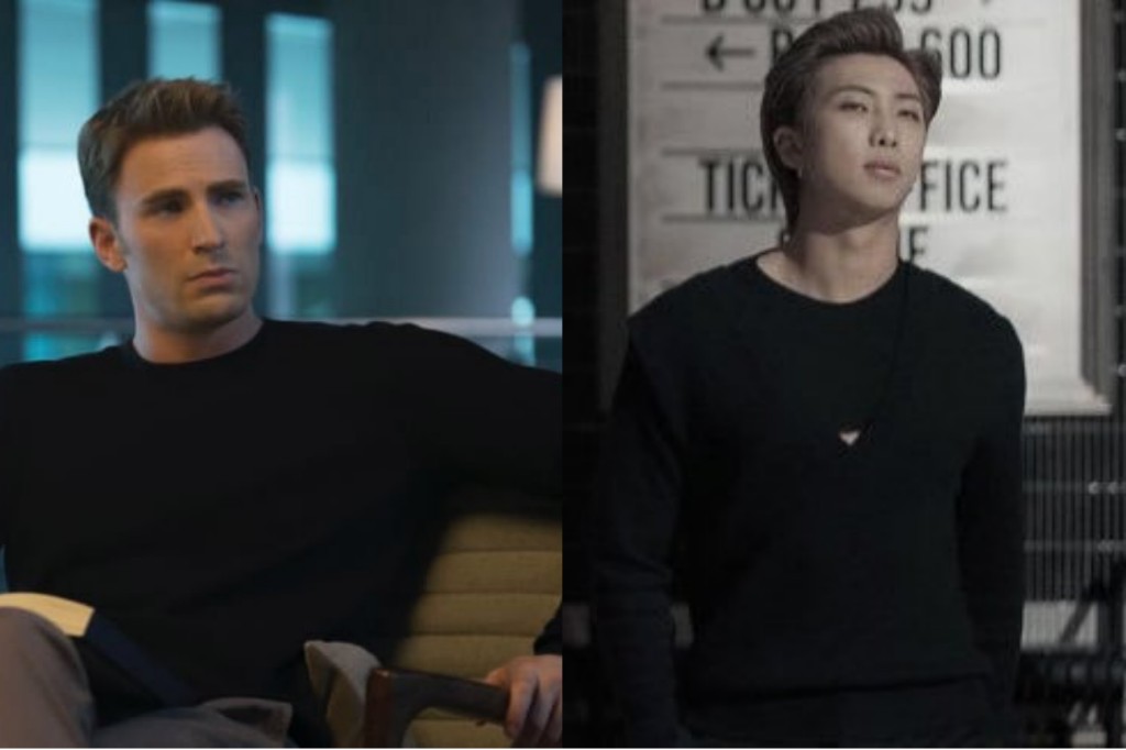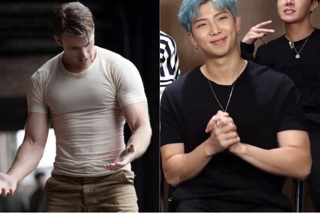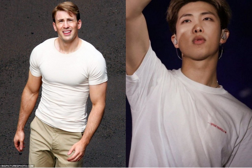 Fans appreciated the stylist for this dark form fitting T-shirt that trended RM’s new buff body.