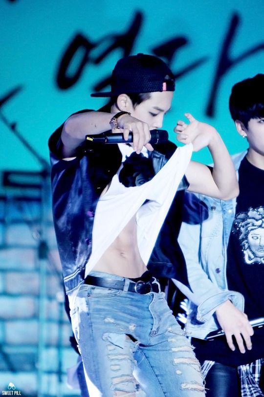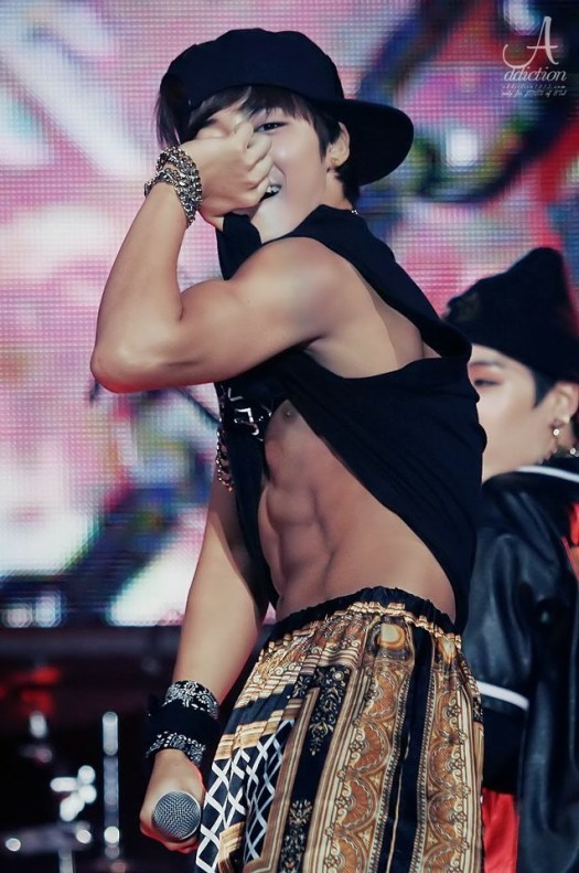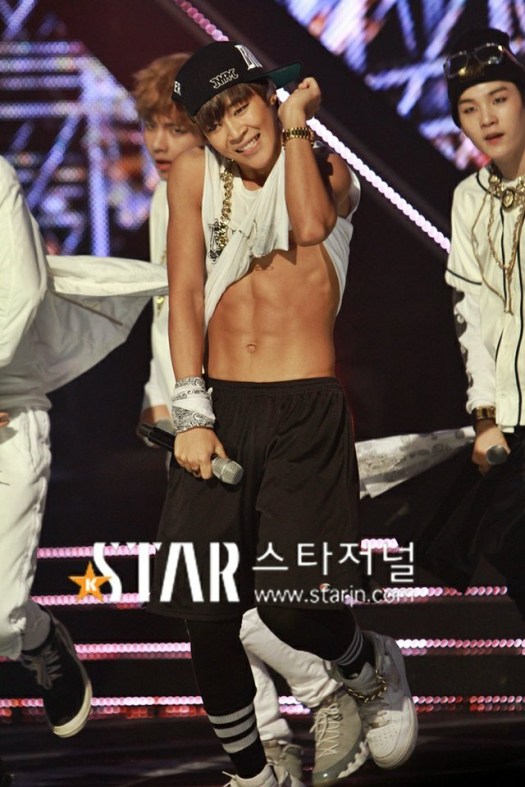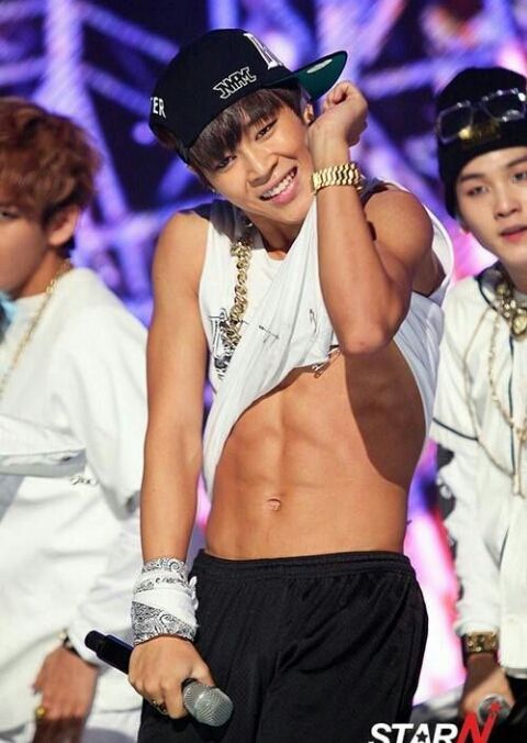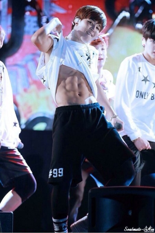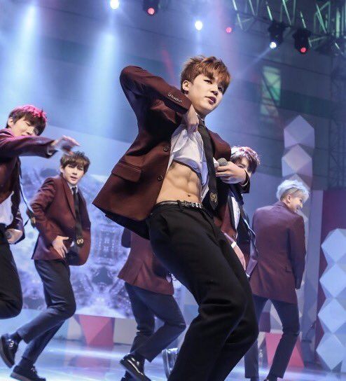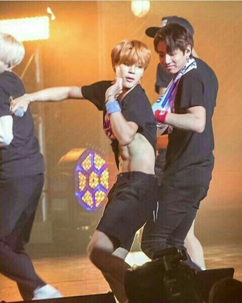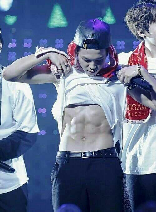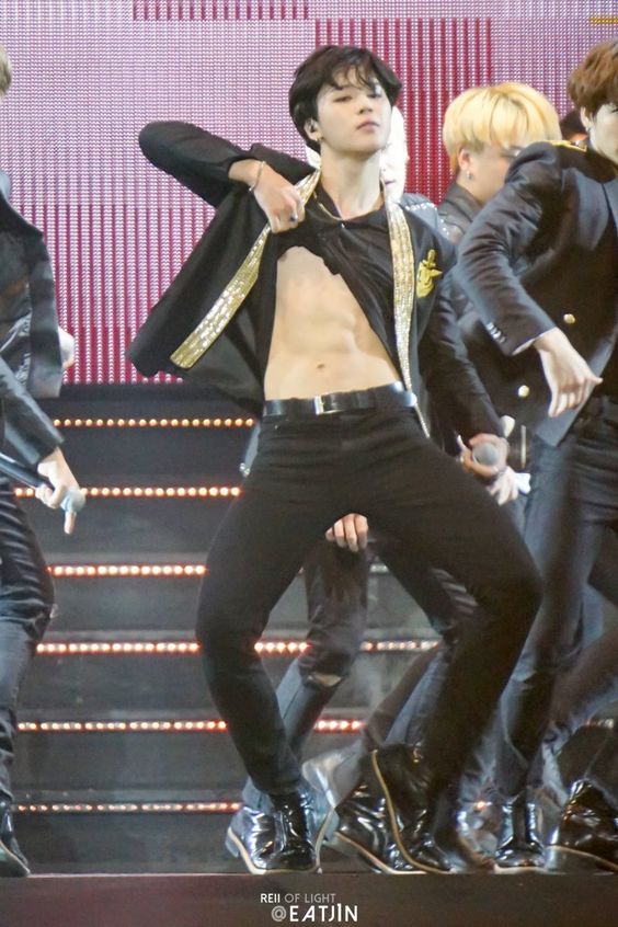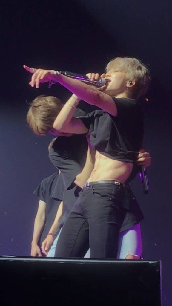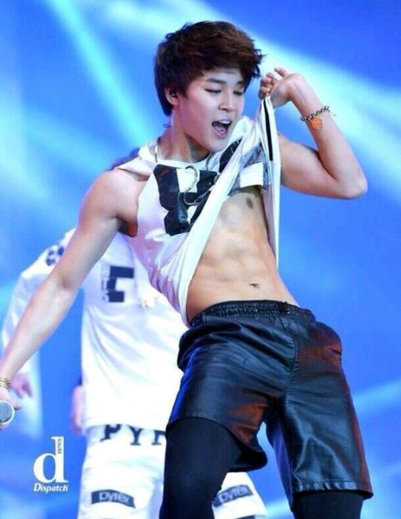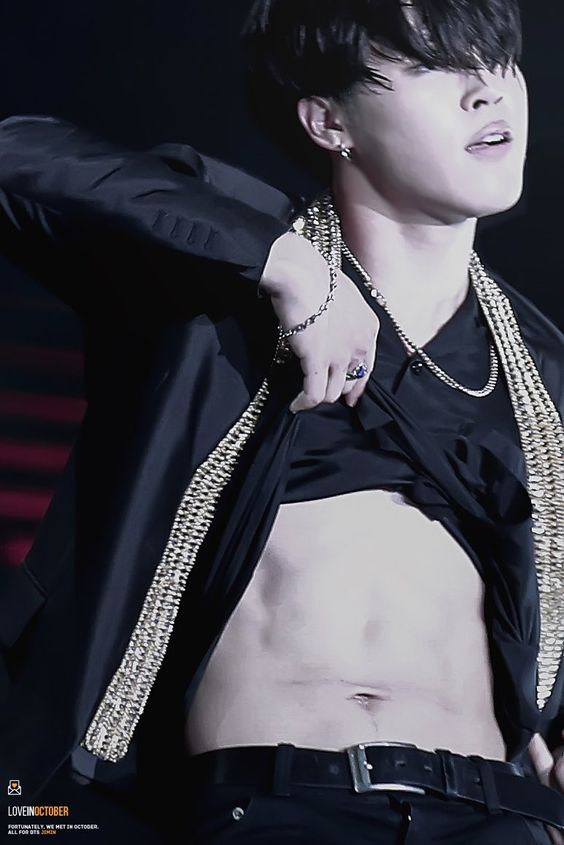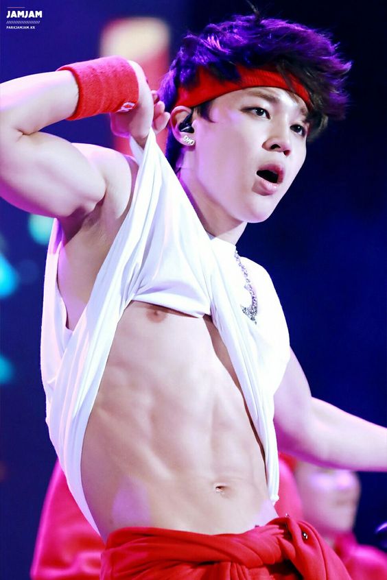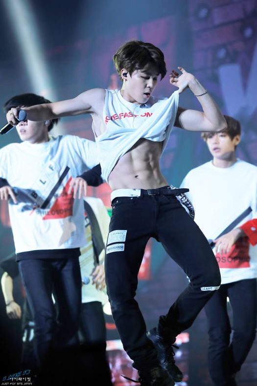 The more the years went by and BTS grew into the music that they produces, we saw less and less of Jimin’s abs, he is still fit and still goes hard when he dances, but revealing his abs is no longer on the agenda. ARMY gets little sneak peaks of his flat tummy when his outfit lifts a little.