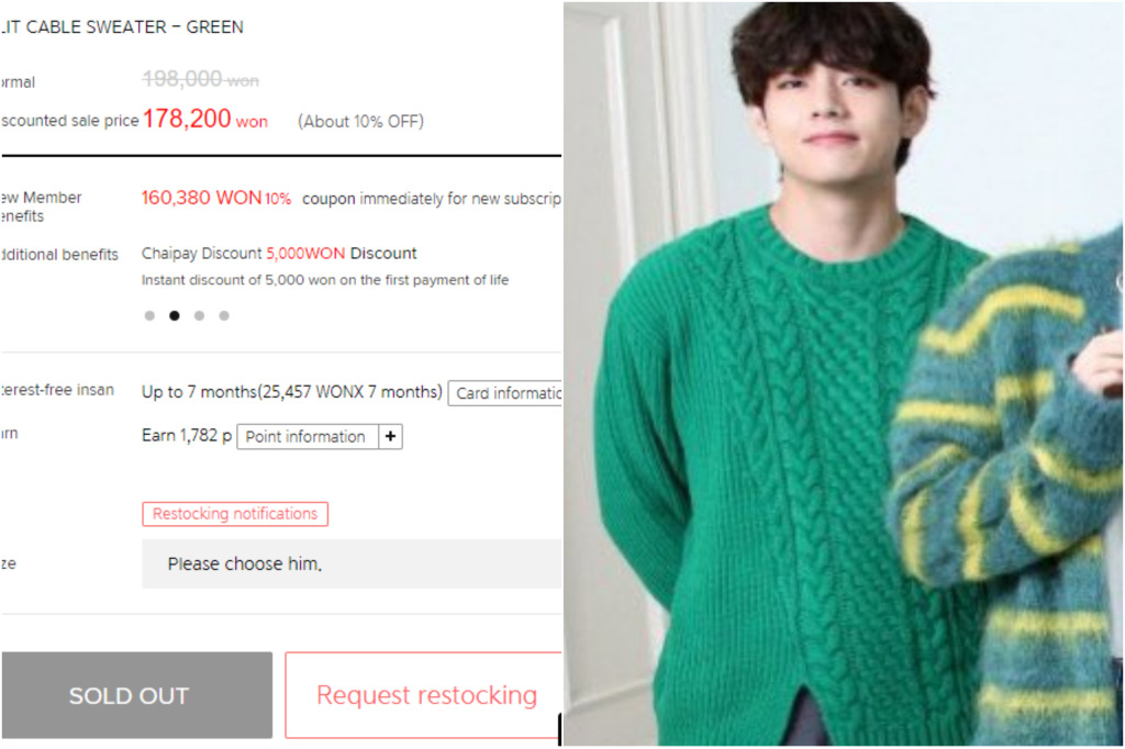 BTS do not only influence fans from their country but internationally as well as the Slit cable green sweater that V was wearing immediately sold out in both Korean and US stores. That was the day of the event on 31st January, 5 days later and the item is still sold out in these stores WCONCEPT (KOREA) and BLUR (US)