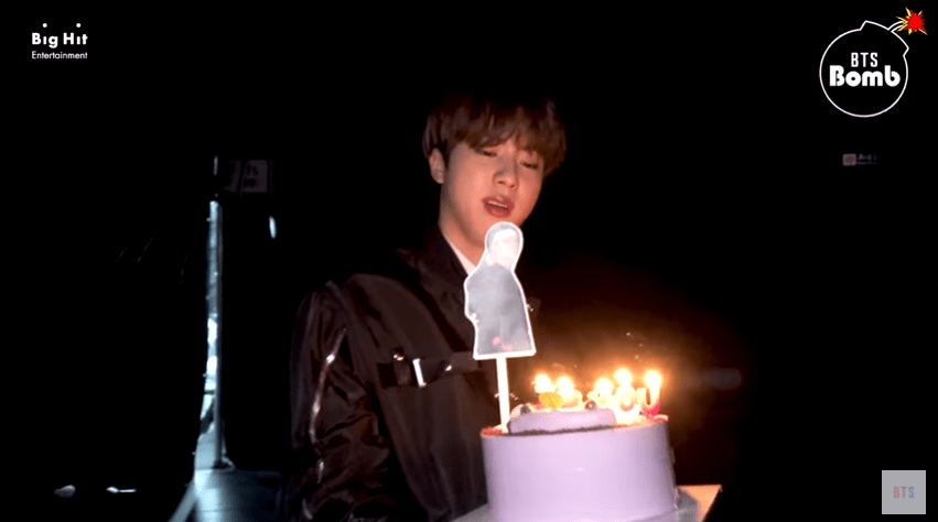 BTS threw a surprise birthday for V. It start off with J-Hope and Jin decorating Jin’s cake and they kept bickering about everything as they laughed at J-hope’s misspelling the word “I love you” BTS members prepared a surprise for V in the waiting room. V couldn’t hide his surprise at the appearance of the members singing happy birthday song and prayed for a wish upon blowing the candles.