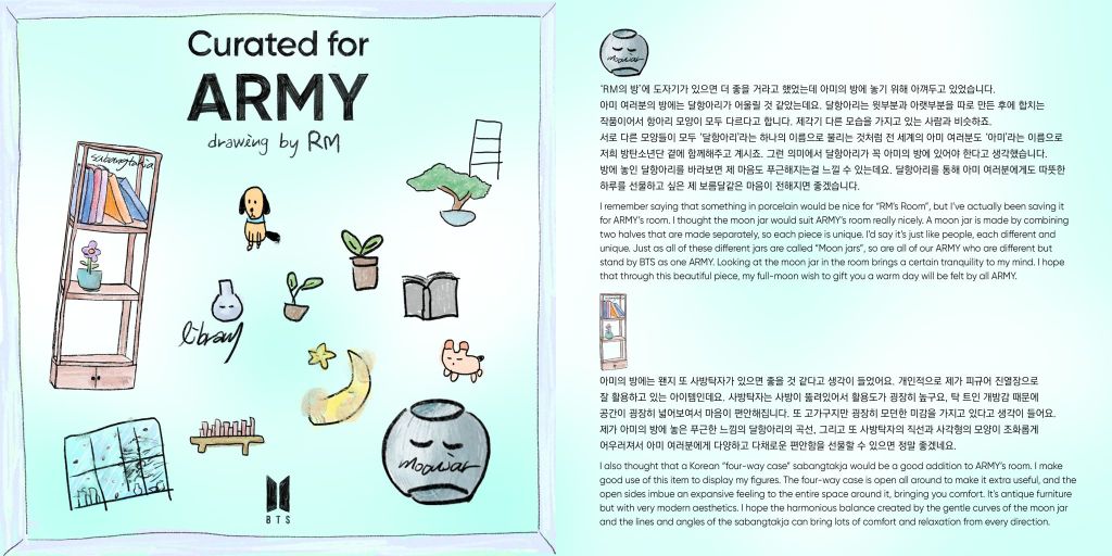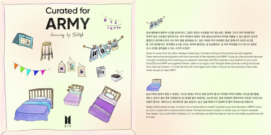 Through this project, BTS didn’t just decorate rooms, they extended an invitation. A personal one. To understand them, to feel closer, to experience their inner peace, creativity, joy, and sincerity. “Curated for ARMY” is more than a collection of themed rooms, it’s a shared space between the members and their fans, built with love, artistry, and intention. And that’s what makes it timeless.