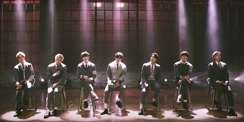 RM and Jin start us off with their first verse “When the tears come streaming down your face, When you lose something you can’t replace” their vocals compliment each other so well that even though you can hear each individual, they still flow like one note.