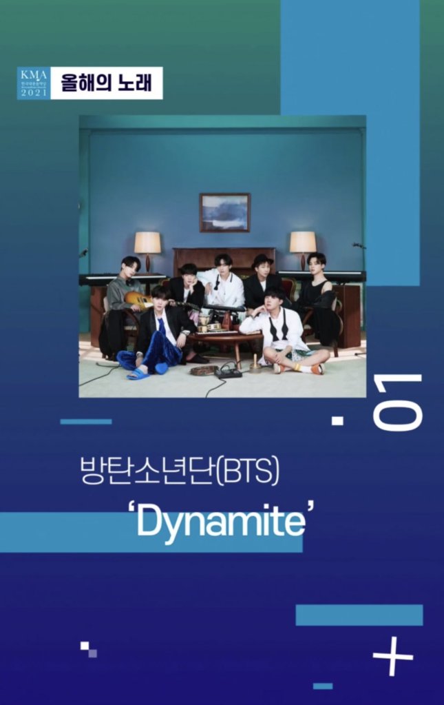BTS becomes the first artist in the history of the Korean Music Awards to win ‘Song of the Year’ twice, with “Fake Love” (2019) and “Dynamite” (2021). Says a lot to win Song Of The Year twice, since the Korean Music Awards (KMA) honors quality and determines winners 100% based on judges and critics.