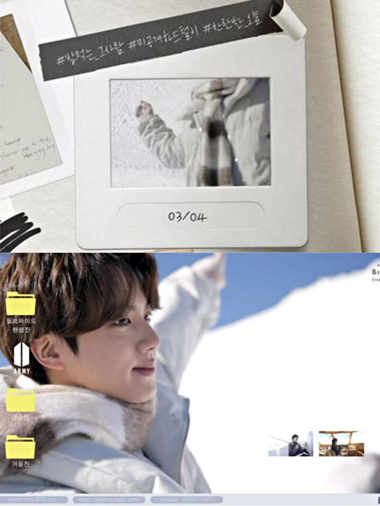 Jin’s log ends with clips of their MAMA 2020 preparations and their Winter Package photo shoot. We have gone full circle with Jin’s memory folders and he looks happy, one with nature, what we love to see.