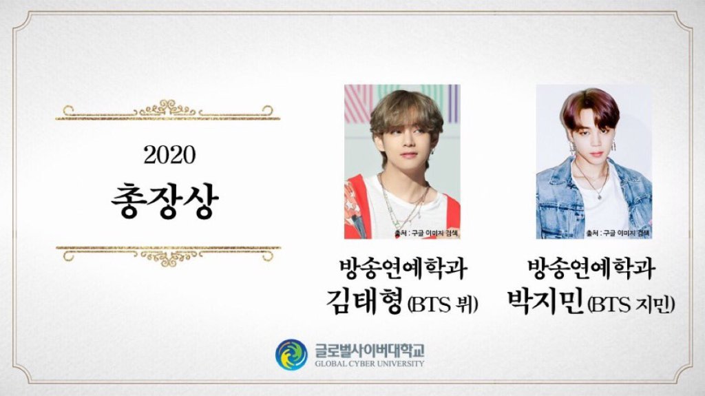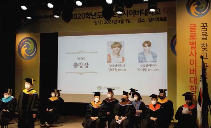 BTS V (Kim Tae-hyung) and Jimin (Park Ji-min) graduated last year August 2020 where they had been pursuing degrees in Entertainment & Media.