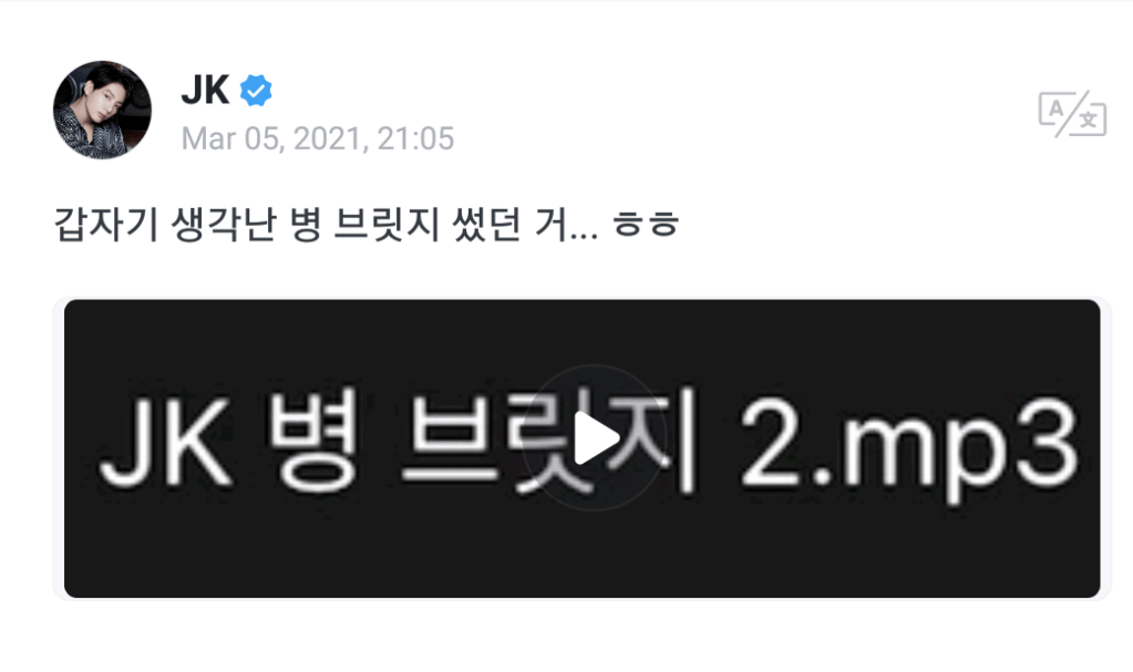 Jungkook posted the video on Weverse with the words “Suddenly thought of the Disease bridge I wrote… haha”