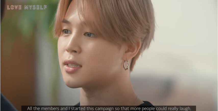“Yes, I can really relate to what Jin said. I think before the campaign, I just vaguely thought id rather see genuine joy instead of forced laughs or tears. All the members and I started this campaign so that more people could really laugh.”