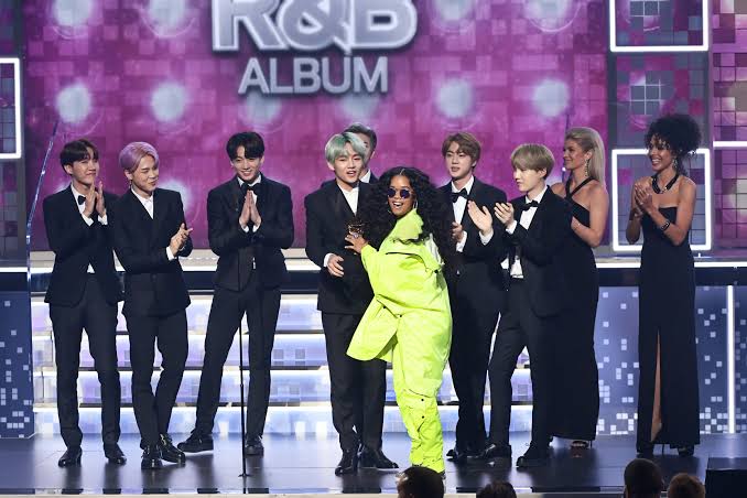 The best selling artists of 2020 were also the first K-pop act to present an award at the Grammys in 2019, when they took the stage to present the best R&B album category, awarding the Grammy to H.E.R. for her self-titled album.