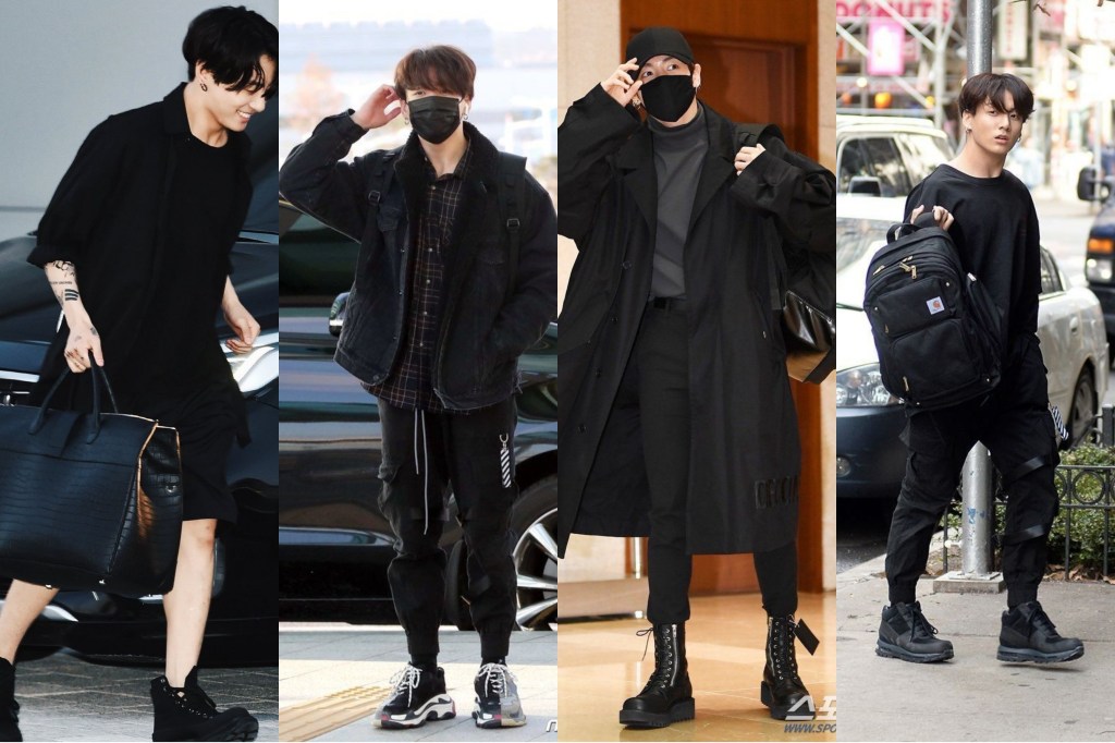 “BTS’ Jung Kook had a VLive on 7th March and talked about a variety of topics. He sang a few songs, gave advise, cheered those who had a birthday and even congratulated someone who had been elected as president joking that he had never been class president. Jungkook is known for his all-black style and fashion especially for casual looks or his airport fashion.