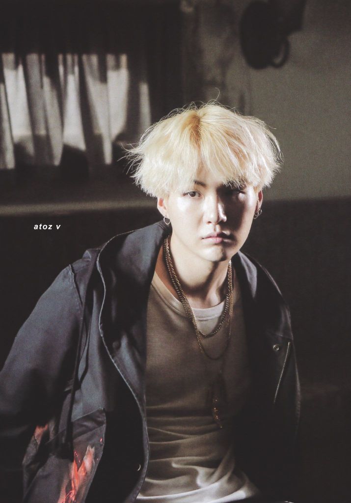 Suga is a rapper, songwriter and record producer. The younger of two sons, he attended Taejeon Elementary School, Gwaneum Middle School, and Apgujeong High School. He became interested in rap after hearing “Ragga Muffin” by Stony Skunk, stating that it was different from anything he had ever heard before. After hearing Epik High, he decided to become a rapper. By age 13, he began to write music lyrics and learned about MIDI.
