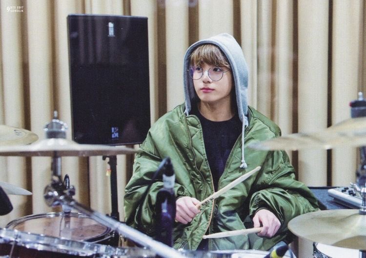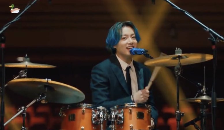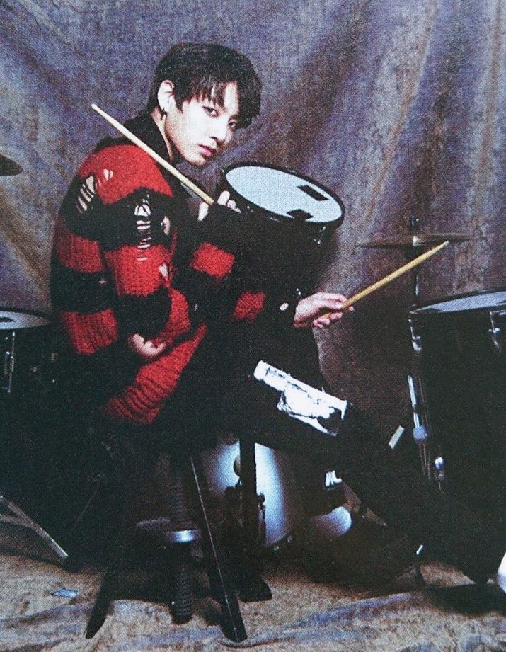 It seems Jungkook has been giving us hints leading up to this moment, drummer jungkook, over the years we’ve seen glimpses of him dabbling in playing with drums, he even had a photo shoot posing with a drum set, so he has been preparing us all along, we saw and it never clicked in our minds, until today.