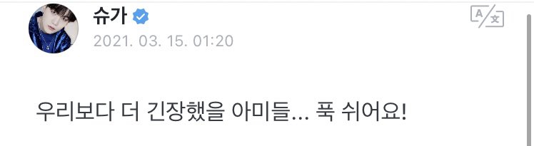 These particular words were shared after an important event, possibly after an awards show, a major performance, or the release of something long-awaited. SUGA, aware of how emotionally invested ARMYs are in BTS’ journey, acknowledged the toll it may take on them. It’s easy to see the idols themselves being nervous about such moments, but what made his message extraordinary was the way he flipped the perspective, expressing concern not for himself or his group, but for the fans.
