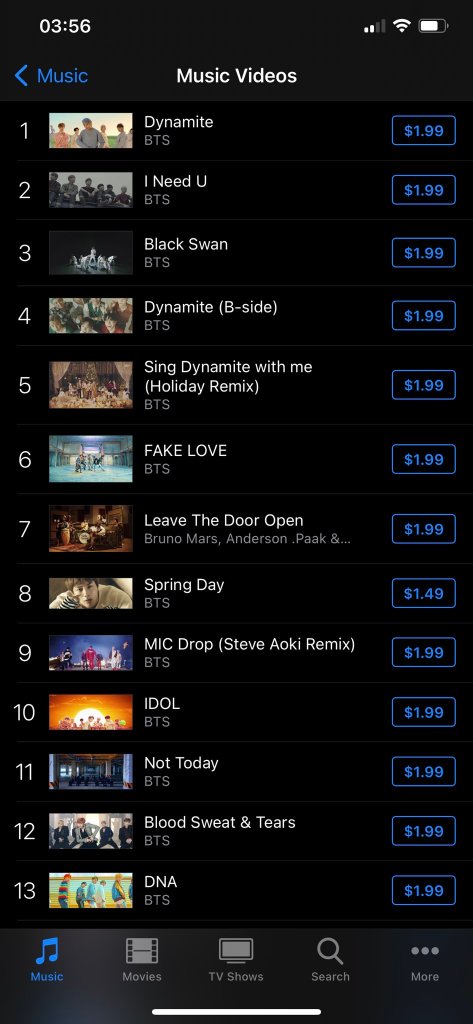 It has been a crazy ride ever since BTS were nominated for their historic Best Pop/Duo Group Performance for Dynamite. After the GRAMMY Awards, BTS handled their news with grace and professionalism and helped to calm and comforted ARMY who were in all sorts of stages of grief. BTS’ ARMY know that the only way that they can fight for their boys is on the charts and they have done so with gusto and finesse. After unloading all those emotions, rightly so, they started to bring back BTS’ discography and at some point they charted their entire discography, 20 out of the top 22 on US iTunes Music Videos are all BTS!