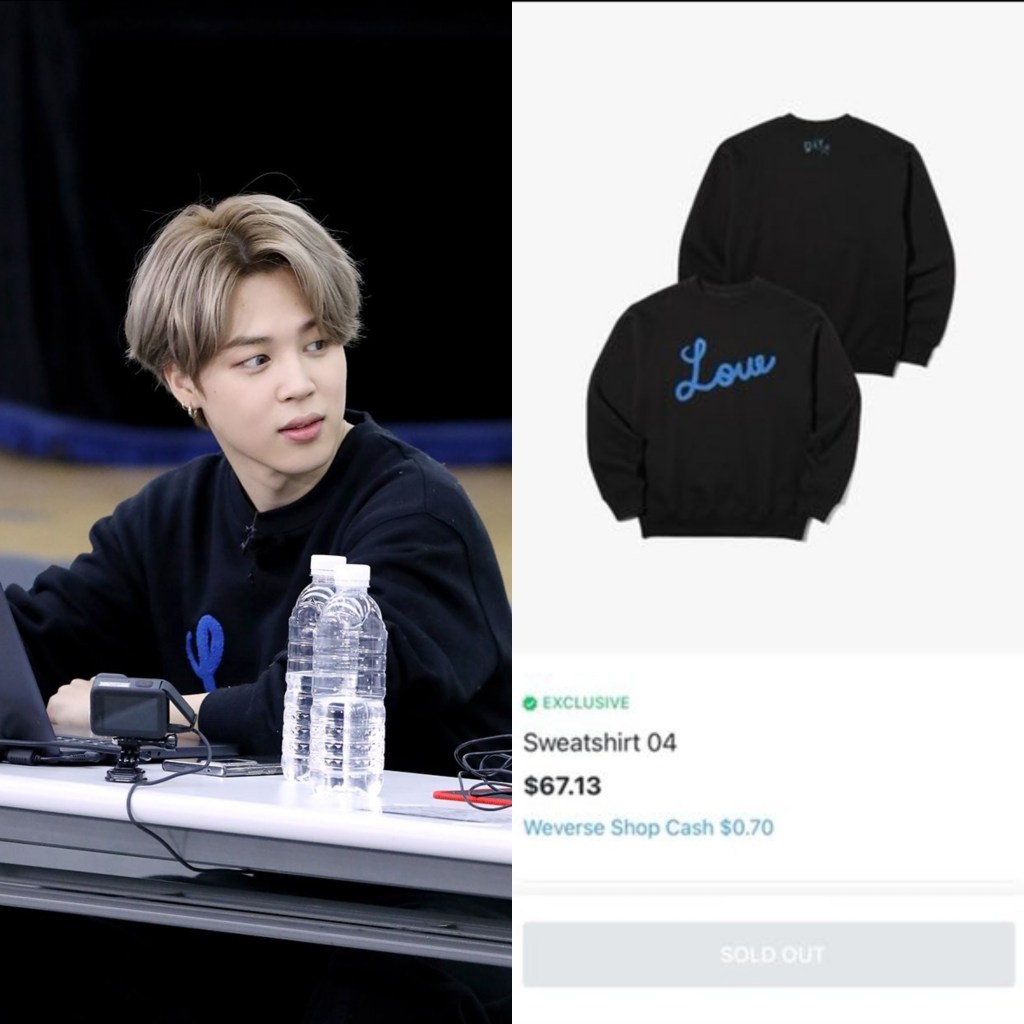 Jimin wore a new BTS Merch ‘Sweatshirt #4’ during the latest episode of BTS Run, is already sold out at the Weverse Shop. K-media also reported on all sizes of BTS Jimin’s black ‘Love’ sweatshirt he wore during “Run BTS” going out of stock immediately after the latest episode.