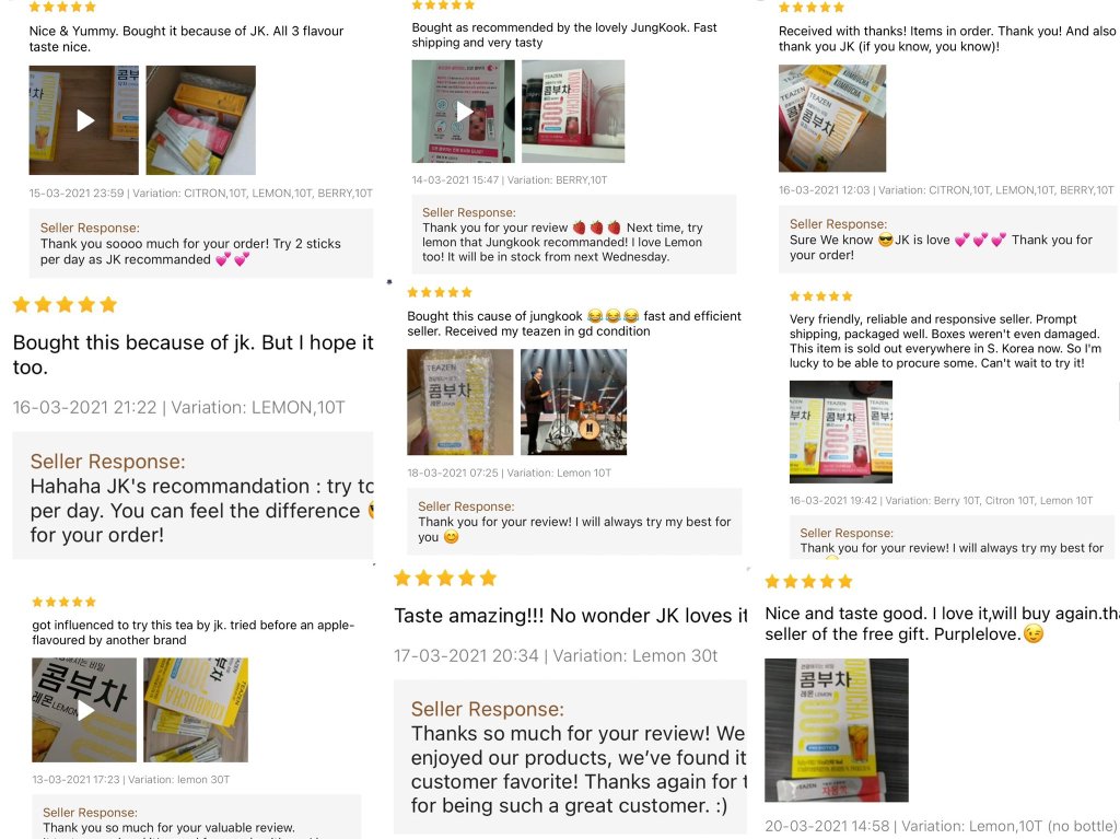 And to think that it all started with Jungkook casually mentioning that he takes 2 packs everyday. Few days later he revealed that he could not get his hands on his favourite lemon flavoured Kombucha as ARMY had sold everything Out! He however thanked them for helping small businesses during these harsh terms.