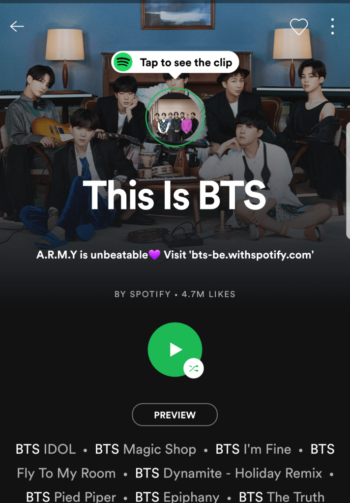 With over 4.7 million likes, BTS now have the most followed “This Is” playlist on Spotify, they surpassed Ed Sheeran who is now second and then third is Queen. Spotify was launched recently in Korea giving local fans the chance to enjoy music on one of the biggest streaming sites in the world.