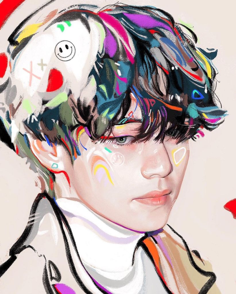 BTS V is a living breathing work of art, his visuals are the study subject of artists, idols and probably everyone that sees him. He has inspired many artists that love his very structural and unique facial features that ooze a lot of refined beauty. Painter Kildren recreated BTS V’s Famous Tweet “ARMY painted me” tweet that he had shared on their Twitter account.