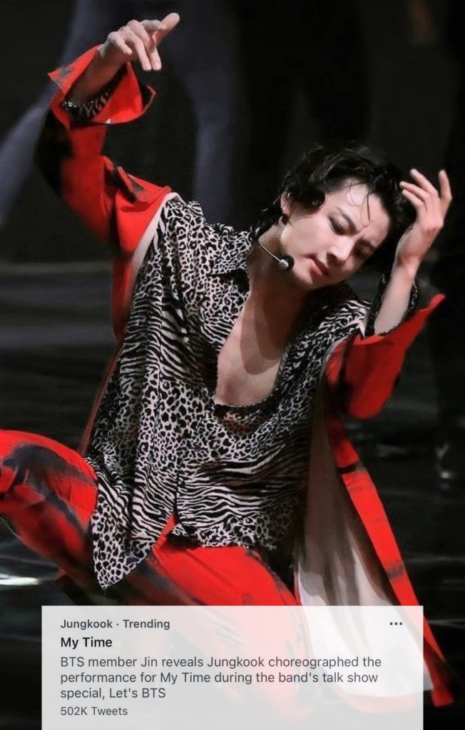 ‘My Time’ is still trending on Twitter with over half a million mentions with Twitter’s description — ‘BTS member Jin reveals Jungkook choreographed the performance for My Time during the band’s talk show special,