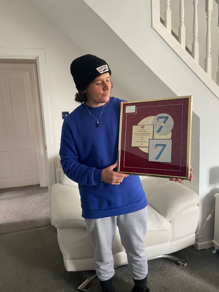 KOOLKID shared on his Twitter handle unboxing his “Map Of The Soul: 7” Gold Plaque writing,