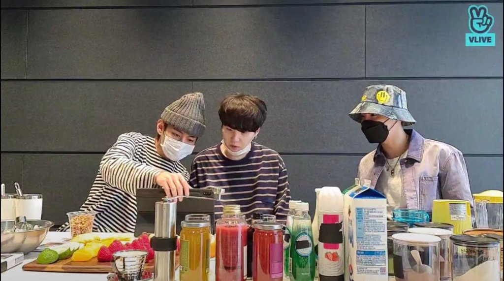They were making different kinds of teas and drinks while talking about various topics, V even mentioned about his mixtape while Suga gave an update on how his shoulder was doing since surgery, they were reading and replying to ARMY’s comments.